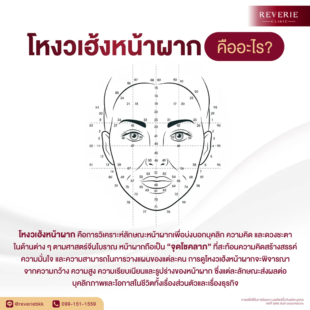 สำหรับใครที่อยากเสริมความปังให้สุด หรือรู้สึกว่าโครงหน้าเดิมยังไม่ตอบโจทย์ การปรับรูปหน้าผ่านเทคโนโลยีทางการแพทย์ก็เป็นตัวช่วยที่น่าสนใจค่ะ Reverie Clinic พร้อมดูแลคุณด้วยความใส่ใจ ทีมแพทย์เฉพาะทางเข้าใจศาสตร์แห่งความงามและโหงวเฮ้งเป็นอย่างดี โดยเฉพาะบริการ ฟิลเลอร์หน้าผาก เราใช้ผลิตภัณฑ์เกรดพรีเมียมและเทคนิคพิเศษเพื่อผลลัพธ์เนียนสวยเป็นธรรมชาติที่สุด แวะมาปรึกษาเราได้เลย พร้อมสวยและเฮงไปด้วยกัน! สนใจปรับโหงวเฮ้งหน้าผาก ติดต่อทีมแพทย์ได้ทุกช่องทางเพื่อรับคำแนะนำฟรีวันนี้เลยค่ะ