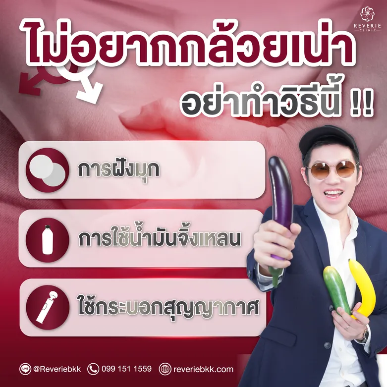 การฝังมุก เป็นการเพิ่มขนาดน้องชายแบบผิดวิธี หมอปั๊ม เพิ่มขนาด ที่ Reverie Clinic ไม่แนะนำ เพราะเป็นการเพิ่มความเสี่ยงต่อการติดเชื้อ ทำให้เกิดอาการอักเสบ บวม หรือเกิดภาวะแทรกซ้อนต่าง ๆ ซึ่งอาจจะต้องผ่าตัดเพื่อแก้ไข