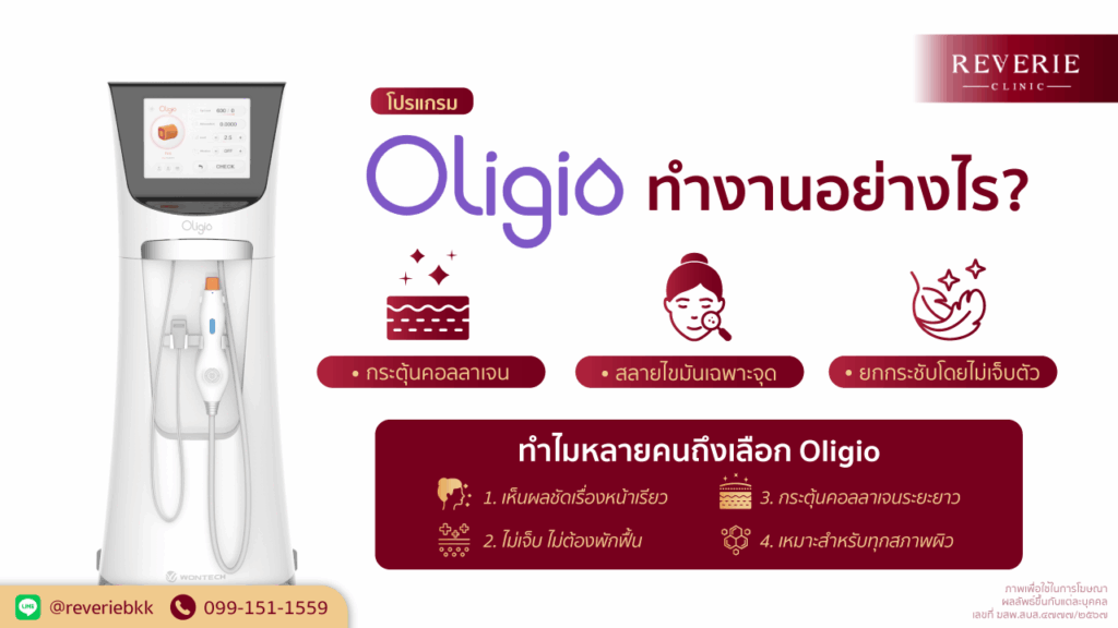 Oligio จึงกลายเป็นตัวเลือกที่ น่าสนใจ” สำหรับคนที่อยากดูแลตัวเอง แต่ไม่มีเวลาในการพักฟื้น รวมไปถึงไม่อยากเจ็บตัว อีกทั้งยังสามารถทำร่วมกับเทคโนโลยีอื่น ๆ เพื่อเสริมผลลัพธ์ เช่น Thermage, HIFU หรือ Ulthera ได้อย่างปลอดภัย